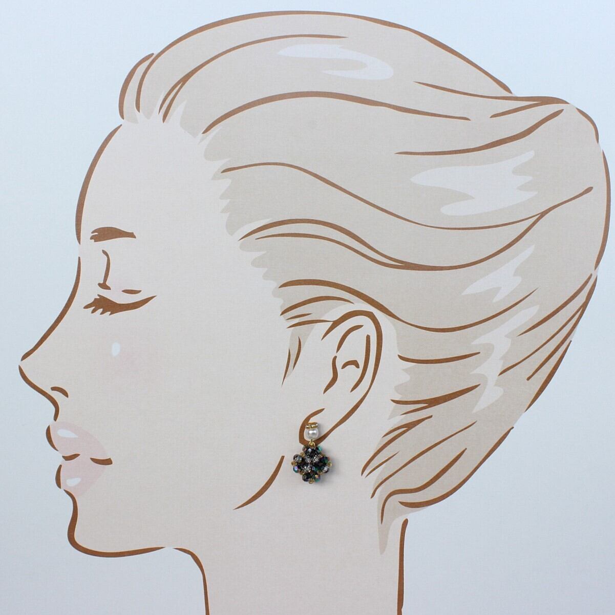 シックなブラックカラーが引き立つエレガントなピアスです。煌めくジュエリーが華やかさを演出し、大人の女性の魅力を引き立てます。特別な日のコーディネートやパーティーにぴったりのアイテムです。