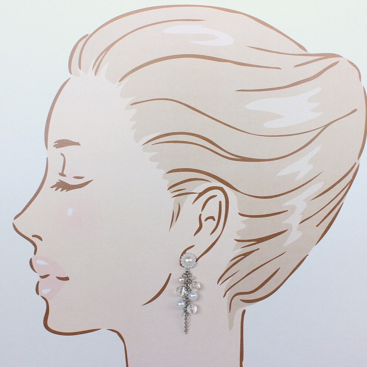 パール調の光沢が女性らしさを引き立て、チェーンやジュエリーをふんだんに使ったデザインです。どんな服装にも相性抜群です。シンプルな色合いながらも存在感のあるデザインで、華やかな場面から普段使いまで幅広くお楽しみいただけます。