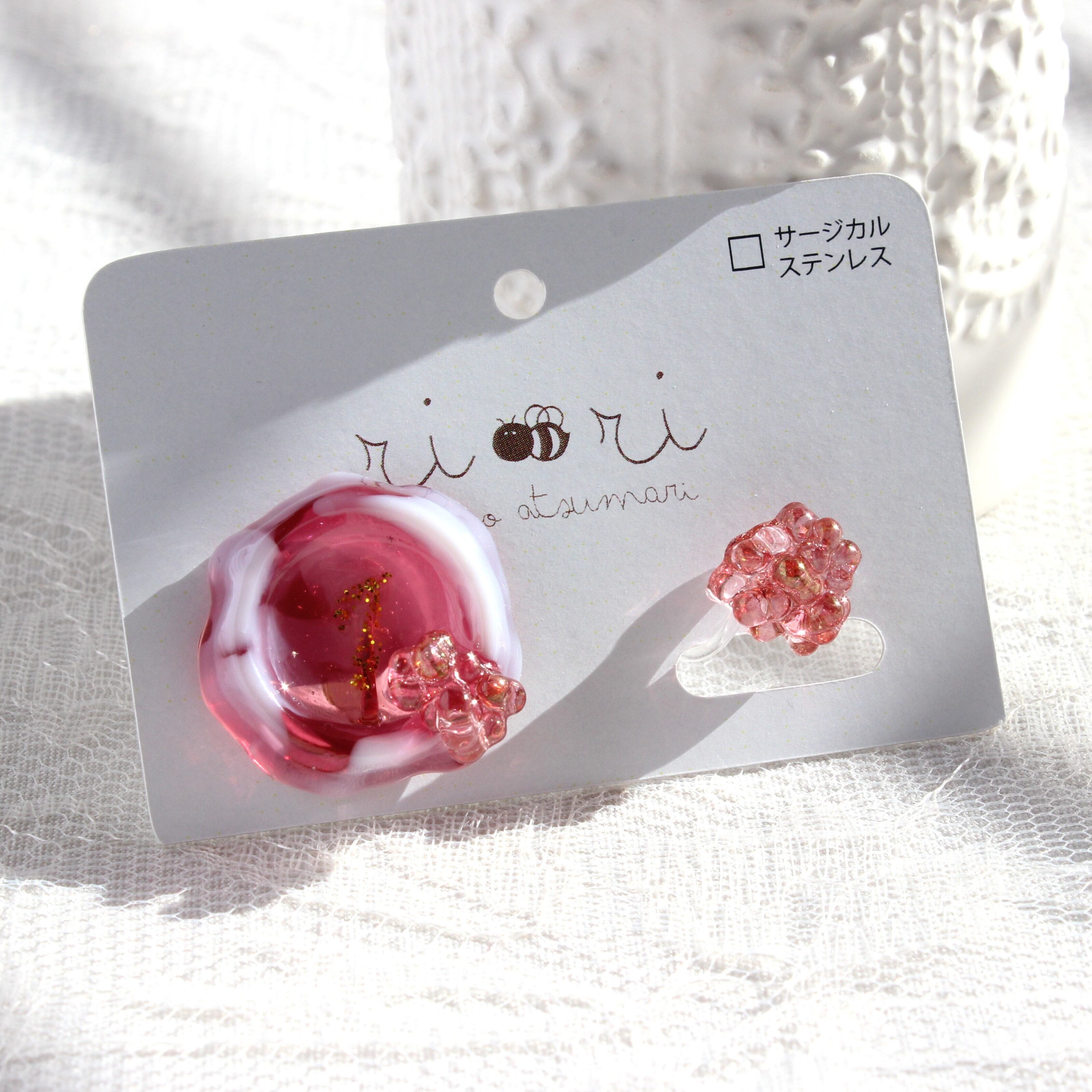 甘美なベリーが感じられる、魅力的なベリーショコラデザインのピアスです。耳元で揺れるベリーのモチーフは、あなたのスタイルに遊び心を添え、一層華やかさを引き立てます。