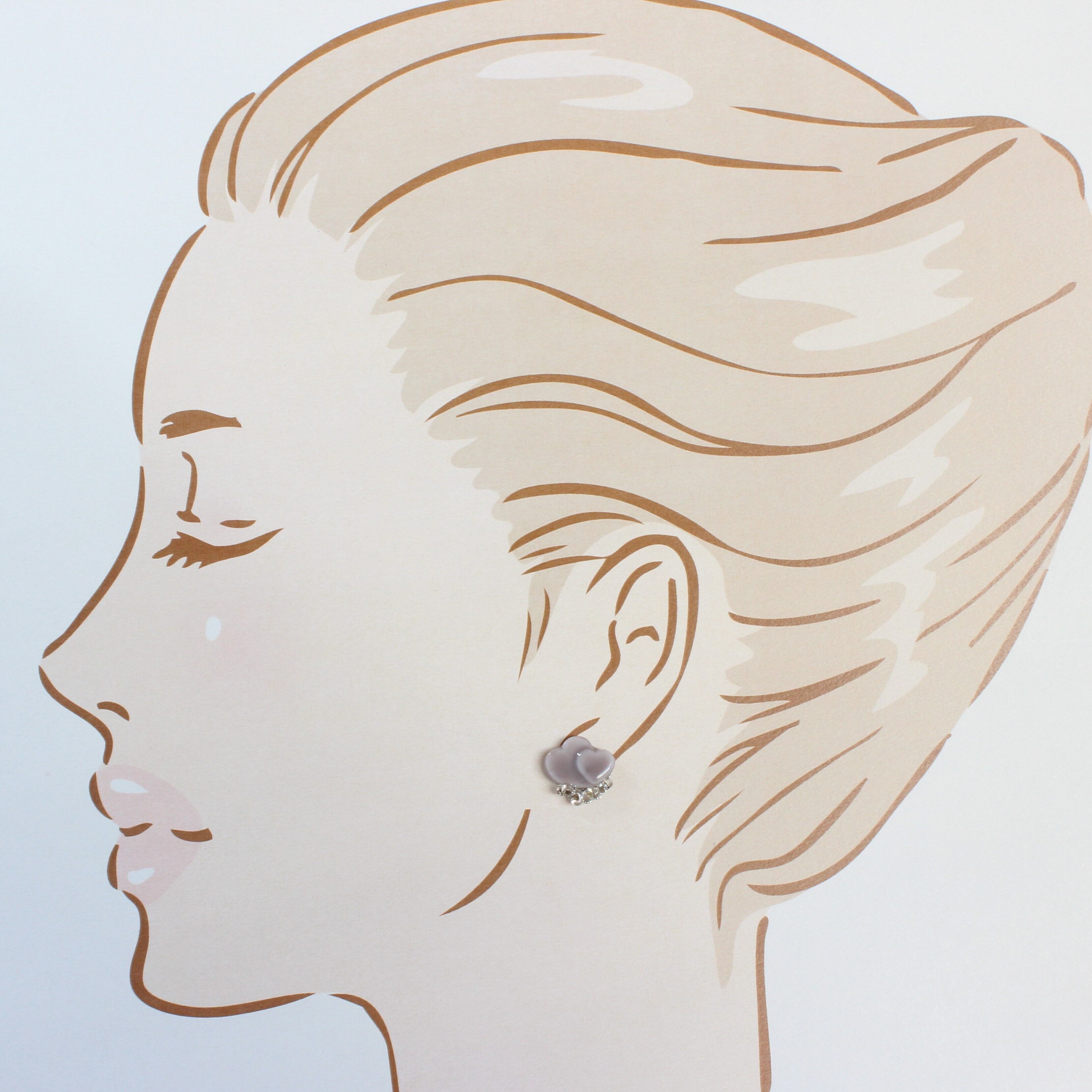 甘美な紫色が魅力的なガラスハートデザインのピアスです。耳元で揺れるハートのモチーフは、あなたのスタイルに優雅さをプラスし、一層華やかさを引き立てます。